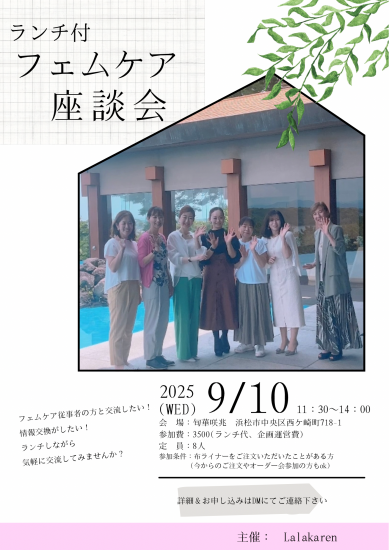 9月10日水曜日ランチ付フェムケア座談会 参加会費